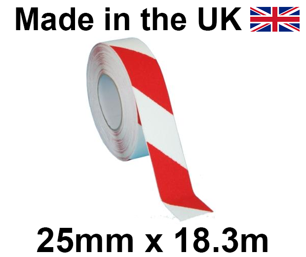 Red & White Anti-Slip Self Adhesive Hazard Tape - 25mm x 18.3m Roll - ...