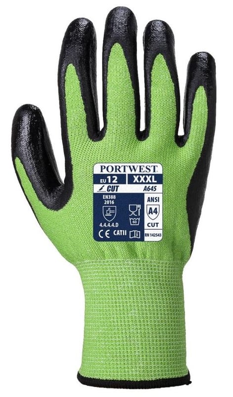 Portwest A645 Level D Cut Resistant Nitrile Foam Green/Black Gloves - ...