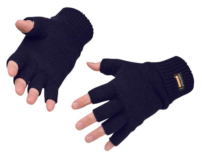 Portwest GL14 Fingerless Knit Insulatex Navy Blue Gloves - Pair - [PW- ...