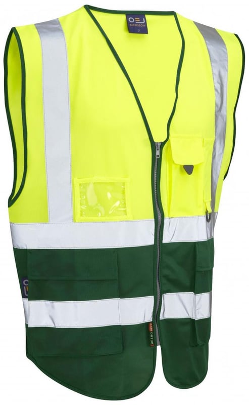 Lynton - Hi-Vis Yellow/Bottle Green Superior Waistcoat - LE-W11-Y/BT
