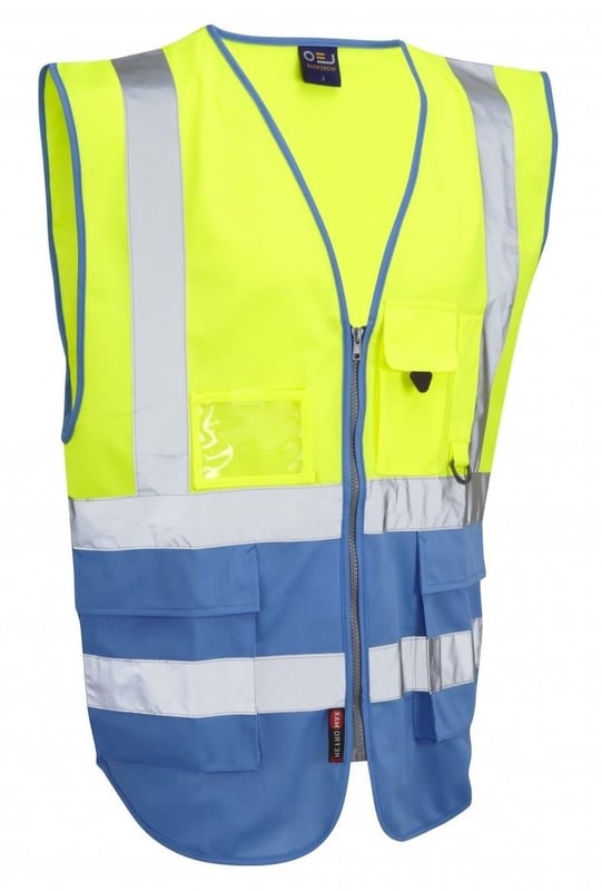 Hi-Vis Yellow/Deep Sky Blue Superior Waistcoat - Generous Size - LE-W1 ...