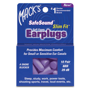 Macks Slim Fit size earplugs are the same as the original SafeSound®, but smaller. Made with super soft foam, these earplugs are perfect for extended use where comfort is paramount.Great for:
