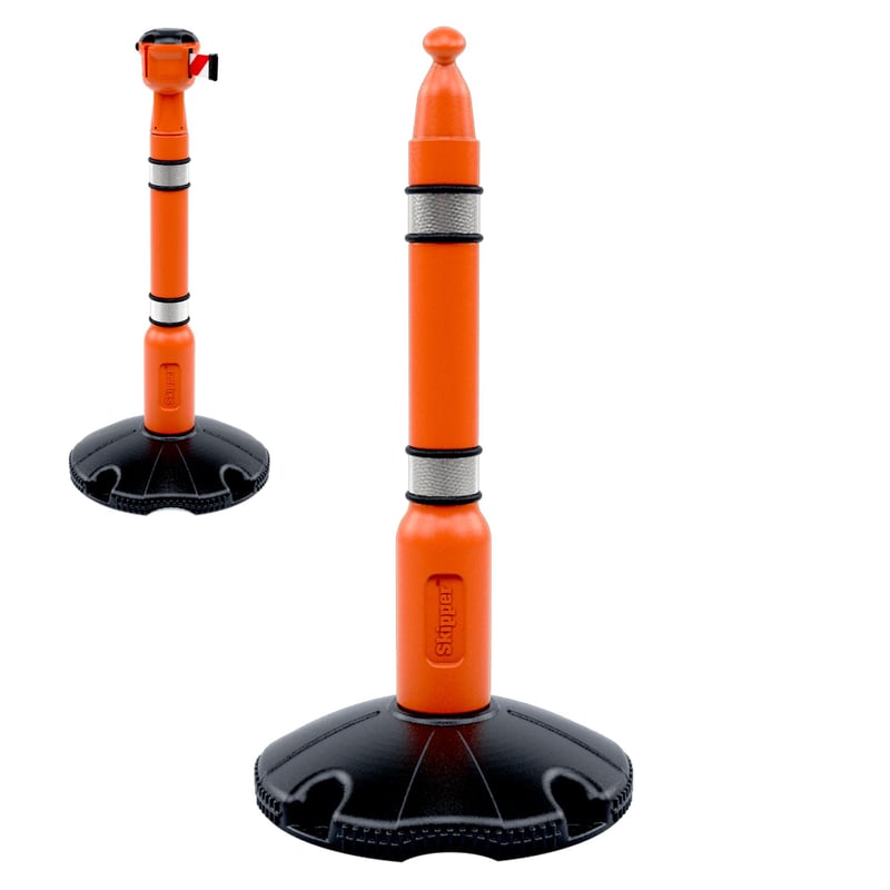 Skipper - Post and Base - Orange Post BLACK RINGS and Reflective Strips - 1 Meter High - [SK-POST1]