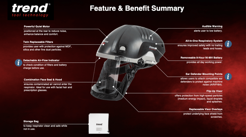 Battery Powered Respirator for Use With all Woodworking Applications - Conforms to EN166 - Special Order