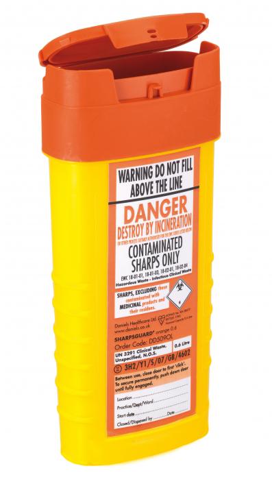 SHARPSGUARD® Orange Lid 0.6 Ltr Sharps Bin NHS CODE FSL094 - BS7320:1990 - [DH-DD509OL] - (DISC-R)
