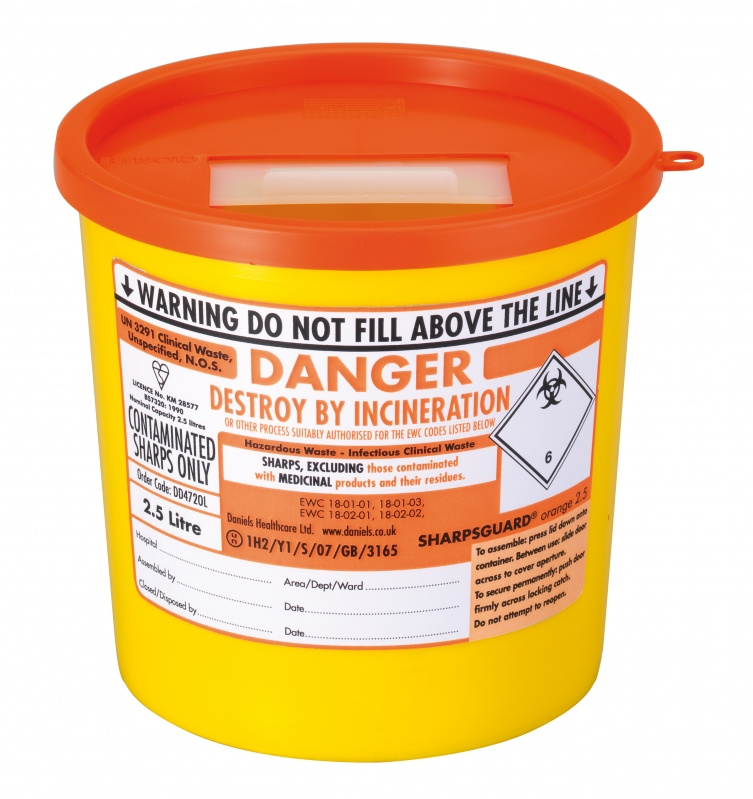 SHARPSGUARD® Orange Lid 2.5 Ltr Sharps Bin NHS Code FSL182 BS7320:1990 - [DH-DD472OL]