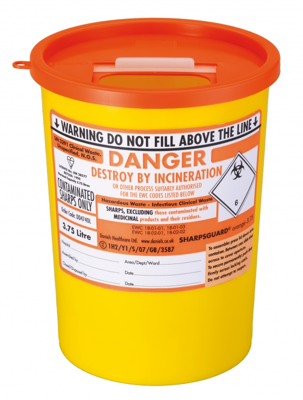 SHARPSGUARD® Orange Lid 3.75 Ltr Sharps Bin NHS Code FSL086 BS7320:1990 - [DH-DD474OL]