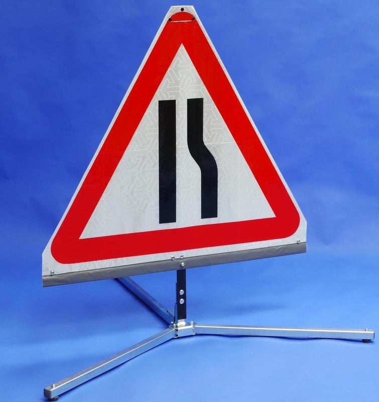 TriFlex Triangular with "Road Narrows Offside" Sign - 750mm - Sign face with Standard Grade Reflectivity - [QZ-517OS.750.TFX]