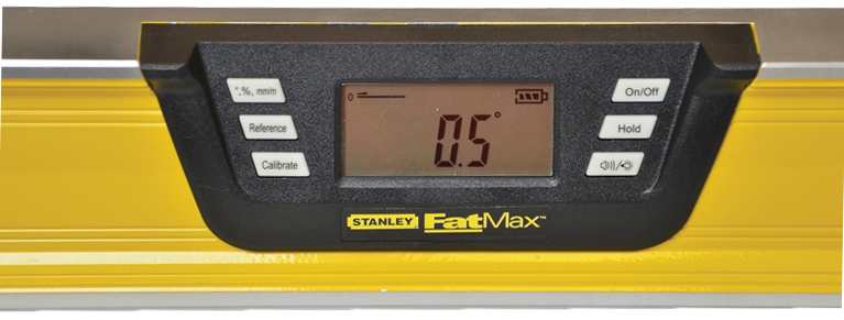 The Stanley FatMax® Digital Levels is highly accurate, measuring to the nearest 0.10 degrees at level and plumb. It has 3 vials: horizontal, vertical and the digital vial. A buzzer sounds at 0°, 45° and 90°.The LCD screen features 180° readout, where the display flips in the upside down position to enable easier reading. The level has a recalibration function, allowing a 'false zero', a hold function and a mode function. It is able to measure in degrees (°), percentage (%) and mm/m. It has 2 milled surfaces and a magnetic base.Supplied with a water-resistant bag.