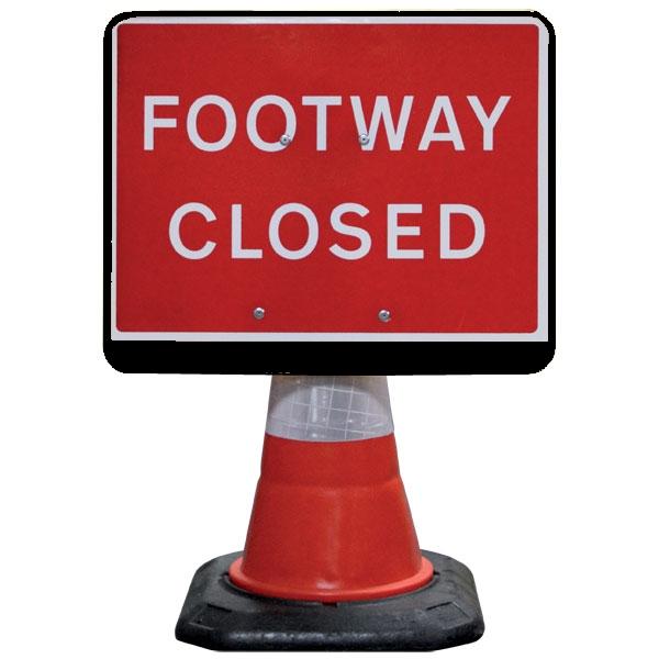 JSP - PortaCone Sign - Footway Closed - 100% Re-Processed LDPE - Cone not Included - [JS-HCA100-201-100] - (DISC-W)