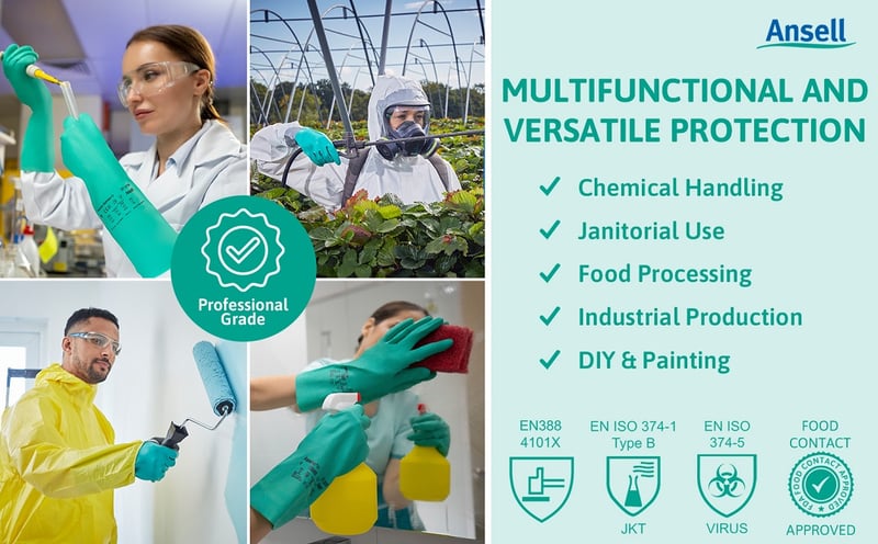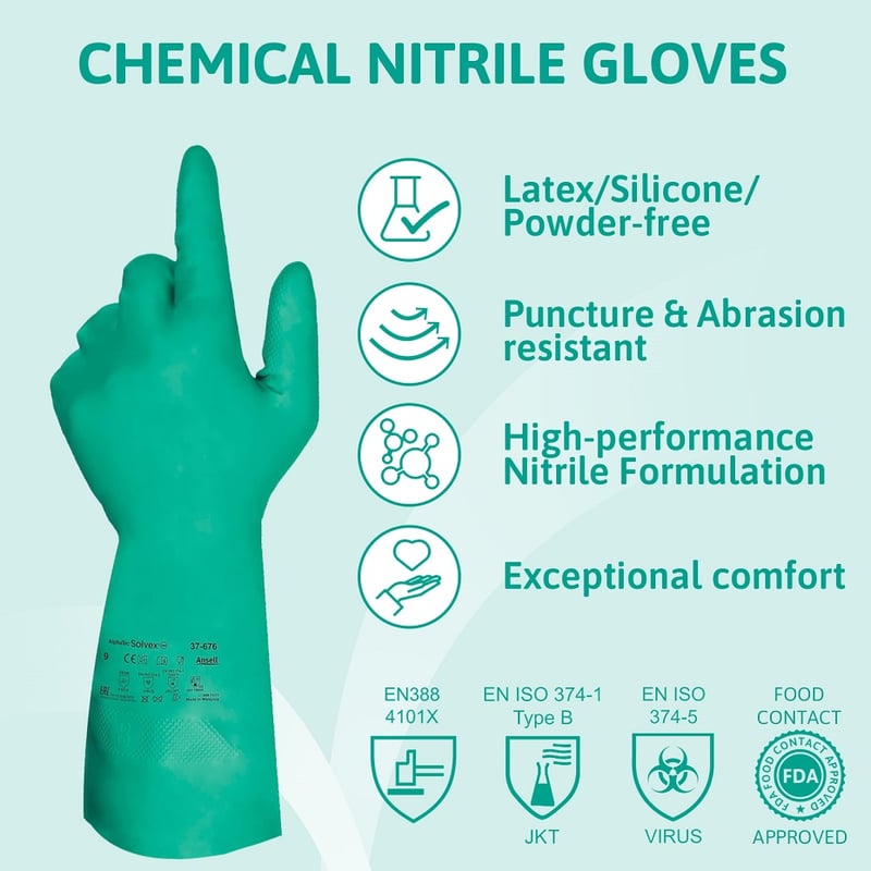 Improved durability: Their nitrile composition offers these AlphaTec gloves greater resilience than neoprene or rubber equivalents of a similar thickness, with EN and ANSI level 4 abrasion resistance