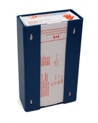 Enclosed dispenser to accommodate standard size boxes of 100 disposable gloves, keeping an area tidy whilst providing easy access to gloves. Manufactured from Detectamet's unique polymer from which pieces can be identified by metal detectors and X-ray inspection systems. Supplied with keyhole points to enable wall fitting, these low weight but tough products are ideal for all production areas because they are easy to clean with drainage slots in the base units.