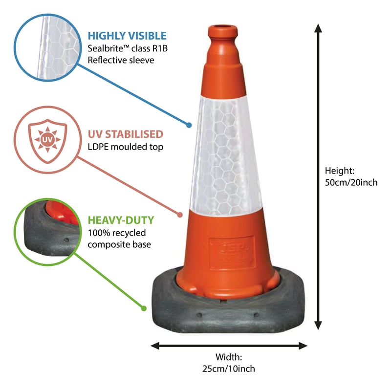 Two-part Moulded Cone With UV Stabilised LDPE Moulded Top and Heavy Duty 100% Recycled Composite Base