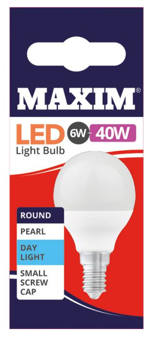 This Maxim LED Round 40w bulb with day light white small edison screw cap fitting is long life with 25,000 hours life glow time with A+ energy rating. These Maxim LED bulbs are a perfect replacement to the traditional light-bulbs using 90% less energy than our traditional incandescent bulbs. |