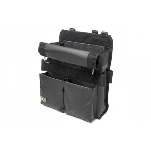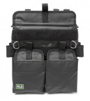 The NLG Linesman Bag is a specialist bag that is designed for industrial climbers who need to keep their tools close, easily accessible and securely tethered. It is the bag of choice for those working in the harshest environments with a unique closure system on all openings to secure bag contents and protect against external elements.The multi-pocket design of the Linesman Bag (two large and two small pockets) combines an array of load-tested attachment points for tool lanyards (4 external tool holders and 8 rings for attachment) with the pocket’s innovative bag closures to prevent the risk of accidental spillage in transit. The pocket’s closures can be rolled back once in work position to allow easy access.The Linesman Bag is manufactured using a combination of reinforced PVC and specially developed Mega Mesh™ to create a tough and rot-proof bag. The Quick Connect™ clips on the rear of the bag allow it to be attached to a belt, harness or handrail.