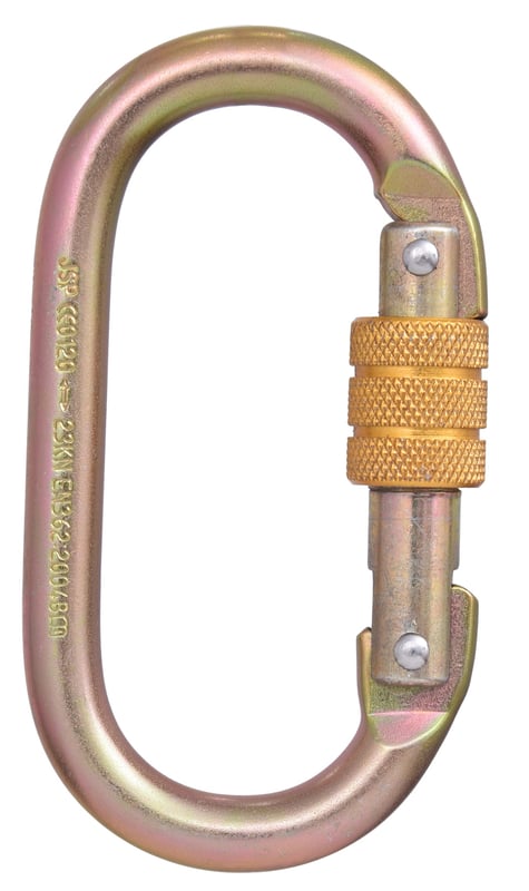 JSP FAR0902 Steel Screw Gate Karabiner - Galvanised Yellow/Gold - 18mm - EN362 - [JS-FAR0902]