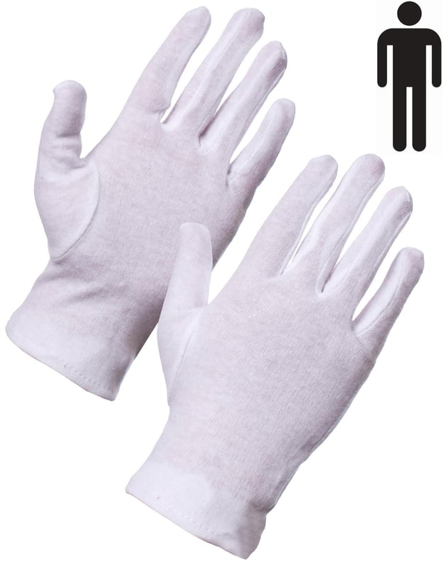 Supertouch Cotton Gloves 10” Forchette Fitted Cotton Gloves - Mens Size - Pack of 10 Pairs - ST-25504