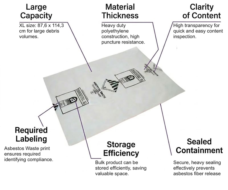 Large Clear Asbestos Bag - 35.5 x 46 inch - UN2212 / UN2590 - Compliant with Safety Requirements for Removal of Asbestos Waste - [WP-30281]