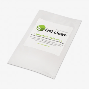 Using natures biocide, Tea Tree Oil, Gel-clear green strips kill airborne and waterborne microbes, leaving a fresh pleasant smell.Gel-clear Green Condensate drain strips are a natural solution using natures biocide. It is a purpose developed condensate drain strip for wall mounts, continuously releasing Tea Tree Oil molecules.Effective for 6 months, Gel-clear Green condensate drain strips are a natural approach to blocked condensate case drains. Preventing biofilm and foul odours from the drain pan.Gel-clear Green is safe and simple to use leaving a fresh, pleasant fragrance for its entire lifespan. Gel-clear Green is safe to use with condensate pumps. |