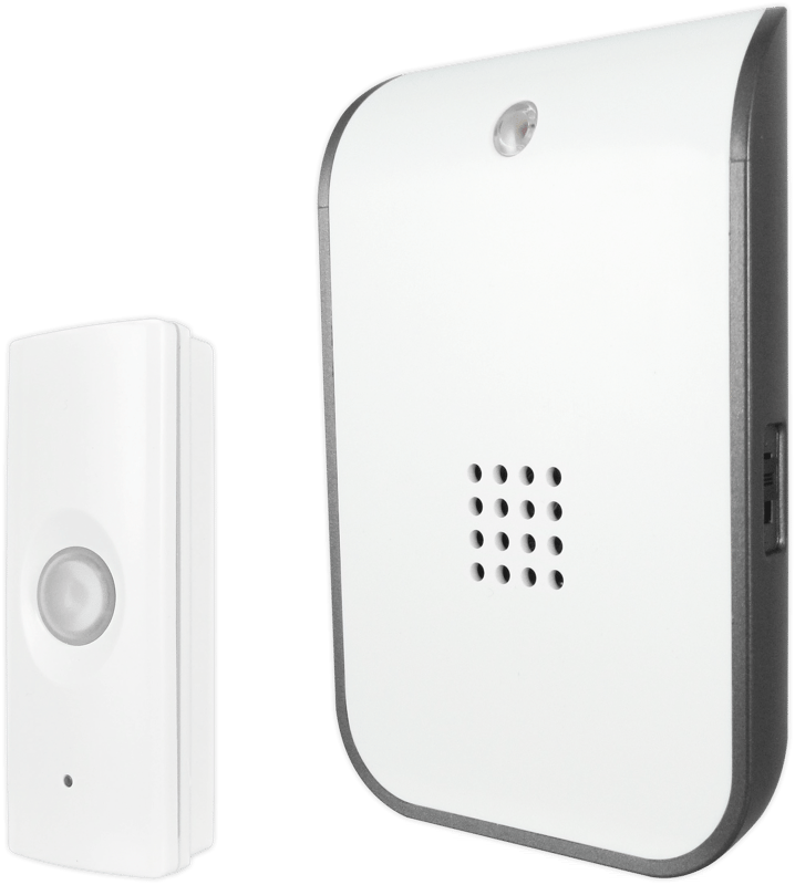 This portable door chime can be used wall mounted, free-standing or carried. The extensive wireless range of up to 150 metres means the chime unit can be carried from room to room and outside into the garden to ensure a visitor is never missed. The weather resistant bell push is easy to attach near your front door and is paired quickly to your chime unit.The chime unit can be programmed to one of 8 enhanced chimes that include the Westminster chime, traditional Ding Dong and other pleasant sounding melodies. The volume can be adjusted to your preference with a built-in mute switch which is ideal for use at night or when children or shift workers are sleeping.All Uni-Com door chimes work together and can be mixed and matched throughout your home. Each model offers its own unique features to help cater for different types of lifestyles. Features: