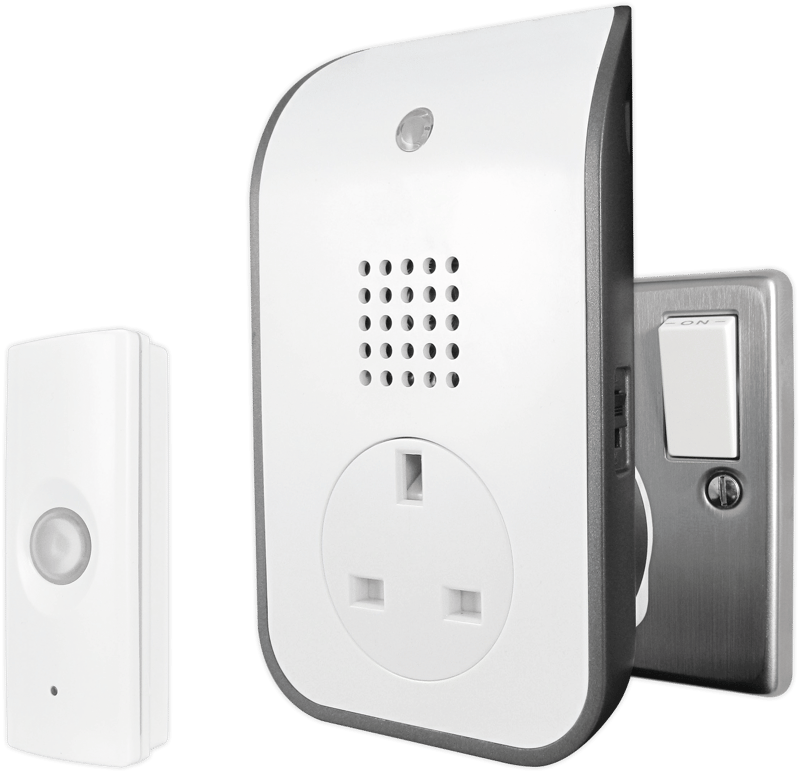 This plug-through door chime can be inserted into any 13A socket around your home whilst leaving it still available for other appliances. This is particular ideal in offices and kitchens where sockets are in high demand. The extensive wireless range of up to 150 metres means that you can put a chime unit in any room around the house, garden or a detached office at the back of your garden. The weather resistant bell push is easy to attach near your front door and is paired quickly to your chime unit.The chime unit can be programmed to one of 8 enhanced chimes that include the Westminster chime, traditional Ding Dong and other pleasant sounding melodies. The volume can be adjusted to your preference with a built-in mute switch which is ideal for use at night or when children or shift workers are sleeping.All Uni-Com door chimes work together and can be mixed and matched throughout your home. Each model offers its own unique features to help cater for different types of lifestyles. Features: