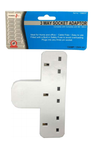PowerPlus - 3-Way Plug in Socket Adaptor - Complies with BS-1363-3 - 3 Sockets - [PU-1086]