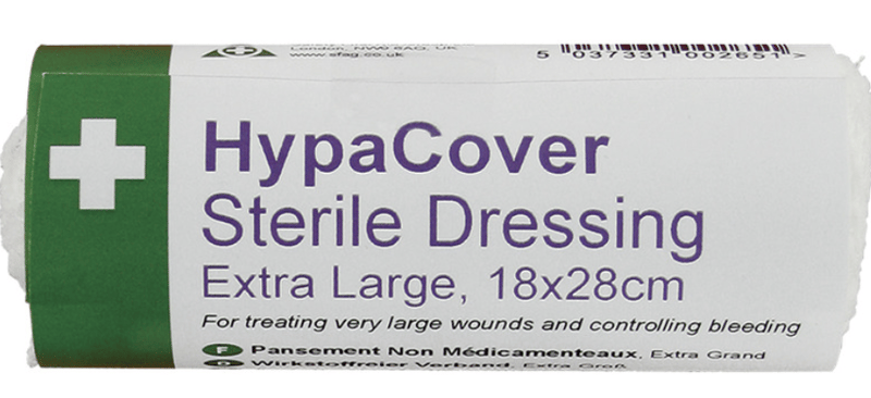 HypaCover Sterile Dressings are of premium quality sterile wound dressings are made to meet HSE first aid recommendations and NHS standard. The unmedicated pad cushions the wound and absorbs any exudates. The sterile wound dressings provide initial protection from infection whilst en-route to hospital. The strong conforming bandage holds the dressing securely in place and helps the wound to heal, providing essential protection from possible infections. Each dressing is individually packaged in sterile flow wrap outer perfect for adding to First Aid Kits. |