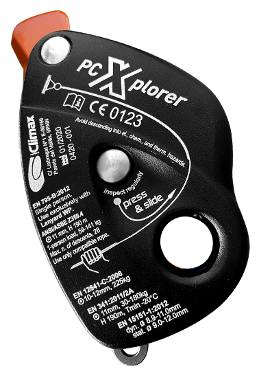 PCXplorer is a multifunctional device developed for the performance of work in vertical suspension, rescue and as a single-person mobile anchor point (EN 795 class B) in the workplace and for the performance of mountaineering and insurance techniques in the sports field.
