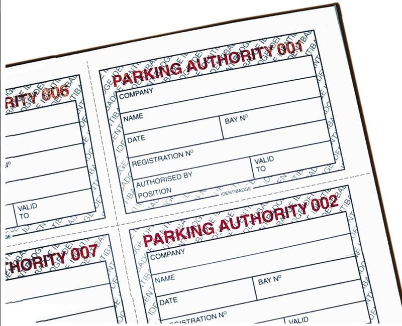 Parking Authority books are spiral bound consisting of a top page with 10 tear out passes to view, then a copy page for your records. This 2 page set-up is repeated through the book. Each book has 100 inserts. |