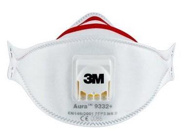 3M™ Aura™ Insulation and Hardwood Respirator 9332+ is our filtering facepiece respirator with Aura™ 3-panel design, adjustable nose clip, sculpted nose panel, red colour-coded headbands and 3M™ Cool Flow™ Valve for comfortable wear. Rated FFP3 (Filtering Face Piece - Class 3) provides protection against high-level fine dusts and oil or water-based mists, typically found during flooring, wall repairs, ceiling repairs and roof or wall insulation, with these types of materials; hardwood, insulation materials, mould and lead.