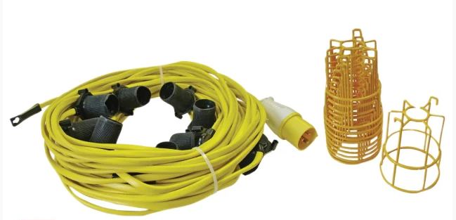 The Faithfull Festoon Light Set, comes on a 22 metre arctic cable supplied with 10 x ES GLS rough service bulbs (110V), each bulb is protected by a lightweight yellow plastic cage. These festoon lights will provide a very effective solution to illuminating a large area on site by hanging the lights in one room and to another across a landing, etc.Instant light without the possibility of shadows that can be caused by using tripod lighting. Fitted with a 16 amp 110 volt plug. |