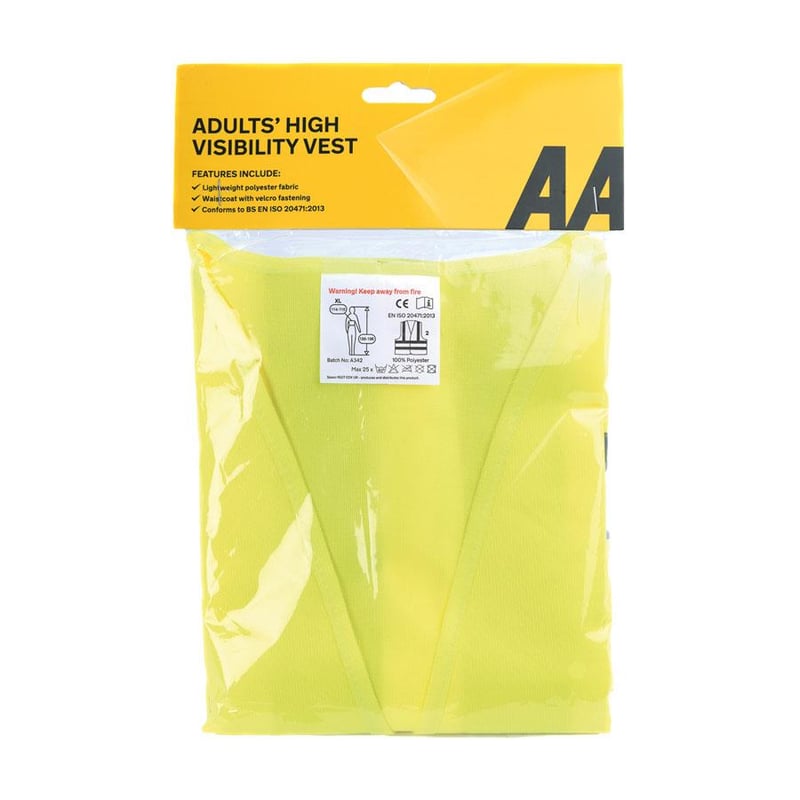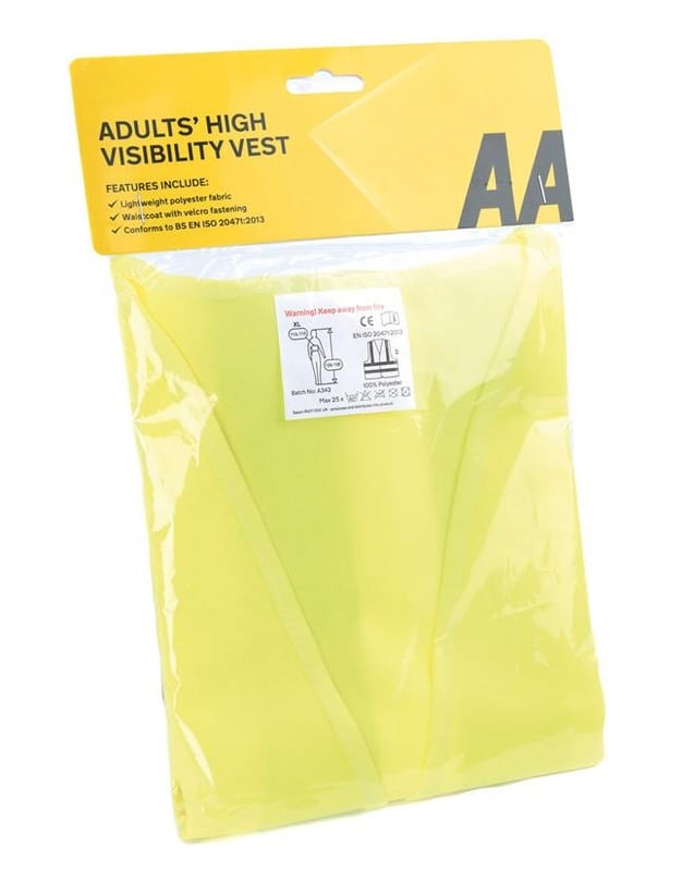 Carrying high visibility clothing in your car is recommended good practice. The AA's high visibiltiy vest provides maximum visibility in an emergency situation and should be an essential part of your car safety equipment. It is even compulsory to carry one when driving in many European countries (and in some instances every occupant of the vehicle must have one) so make sure you and your family are protected.