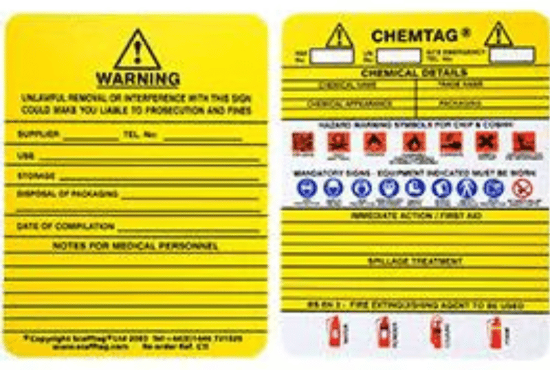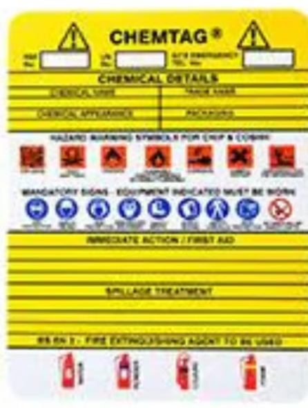 A complete hazardous substance status insert to help prevent accidents and efficiently manage inspection procedures. Specifically designed to identify hazardous substances as defined by COSHH (Control of Substances Hazardous to Health):1999. The Chemtag insert contains all the pertinent information specific to the risks that hazardous substances pose such as: