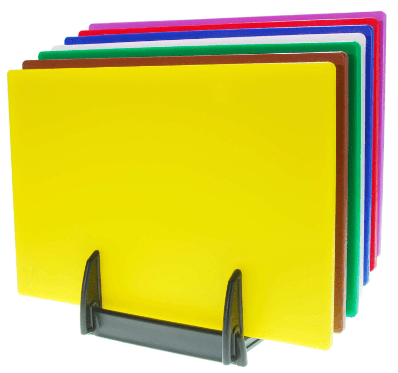 Suitable for use in any high-traffic catering environment, our Chopping Boards are a durable and long-lasting addition to your current equipment range. Colour coded to help with your cross-contamination prevention methods, each one protects your kitchen surfaces from the impact of knives and other cooking utensils while securely holding food as you cut to the desired size. They are compliant with HACCP regulations and can be stored efficiently in a suitable rack for easy selection when needed.Made from low-density polyethylene, each coloured chopping tool can be hand washed or put in a dishwasher for quick and efficient cleansing. An essential to any busy kitchen, our chopping boards promise to last making them an economical choice every time and come in cases of 10 depending on your specific needs.