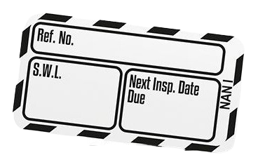 Insert with Safe working load (SWL) and "Next Test Date" to clearly display latest safety, maintenance and identification information at the point of use.A selection of coloured Safe Working Load inserts are available providing the option of additional visual qualification.Designed to operate alongside Nanotag holder.Helps comply with legislative requirements and good practices of: