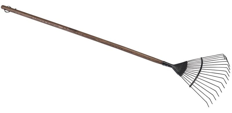 16 flexible round steel tines with epoxy coated finish. Ash handle with a clear lacquered finish.