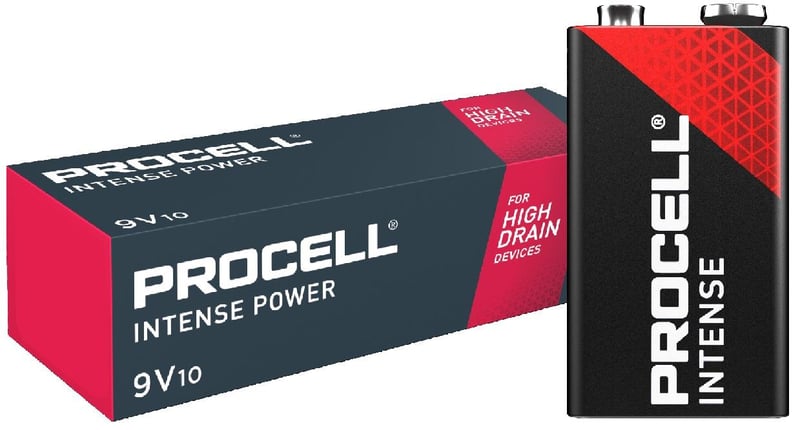 Procell Alkaline Intense Power 9V industrial batteries are recommended for use in high drain professional device.Features: