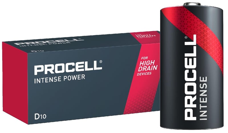Procell Alkaline Intense Power D industrial batteries are specifically designed to last longer in high drain professional devices that require a high amount of power or peaks of power, such as a soap dispenser.Features: