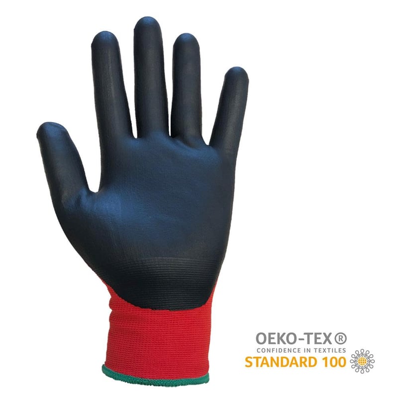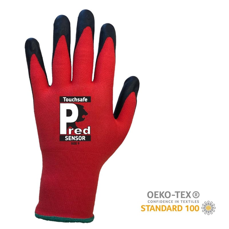 The Pred Sensor consists of a 15 gauge, red, nylon and spandex liner; palm coated in revolutionary PolyMAX™, offering 360o comprehensive breathability. PolyMAX™ has incredible abrasion resistance. The environmentally friendly ‘green’ coating absorbs oils and repels water, working to reduce slips and aid hand fatigue. The Pred Sensor is suitable for use in food industries, and the whole coated area is touchscreen compatible. This glove is available in sizes 8 (M) to 11 (XXL) and is finished with an elasticated wrist with a coloured cotton size indicator.