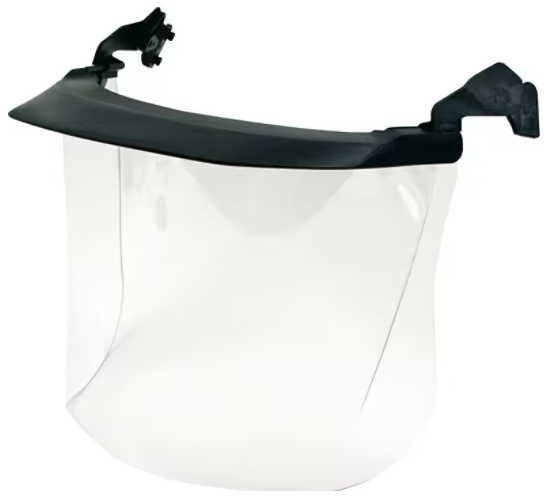 3M Faceshield, V4HK is our standard peak, 1.2 mm thick, optical class 1, scratch resistant, clear polycarbonate faceshield. It's designed to fit 3M Hard Hats and provides protection UV, molten metal and against low energy impacts.
