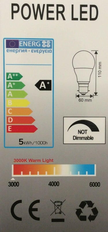 Power Plus - 5W - B22 Energy Saving A60 LED Bulb - 470 Lumens - 3000k Warm Light - Pack of 12 - [PU-3395]