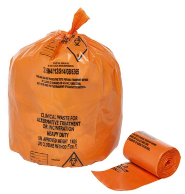 Our Orange clinical waste sacks are all UN Certified and star sealed at the base of the sack – this ensures additional strength and protection against leakages.?Orange ADR Approved Clinical Waste Sack (Suitable for Bulk Transport) – These Sacks are Certified to Carry up to 25kgs