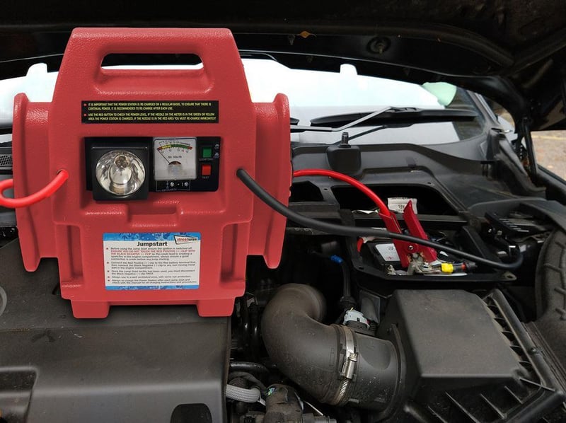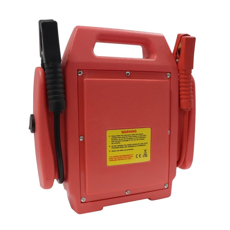 A portable 12V power station that is able to emergency jump start petrol vehicles up to 2500cc and diesel vehicles up to 2000cc.This power station comes with one 12V DC power socket for operating any 12V accessory or 12V USB adapter.This power station comes with high-quality booster cables as well as a bright LED work light for use at night or in low light conditions. It also features an analogue display that shows current charge level and LED warning indicators in case of reverse polarity.Includes rechargeable 10Ah battery as well as adaptors for charging the kit through the mains power supply (230V) and through the 12V socket.