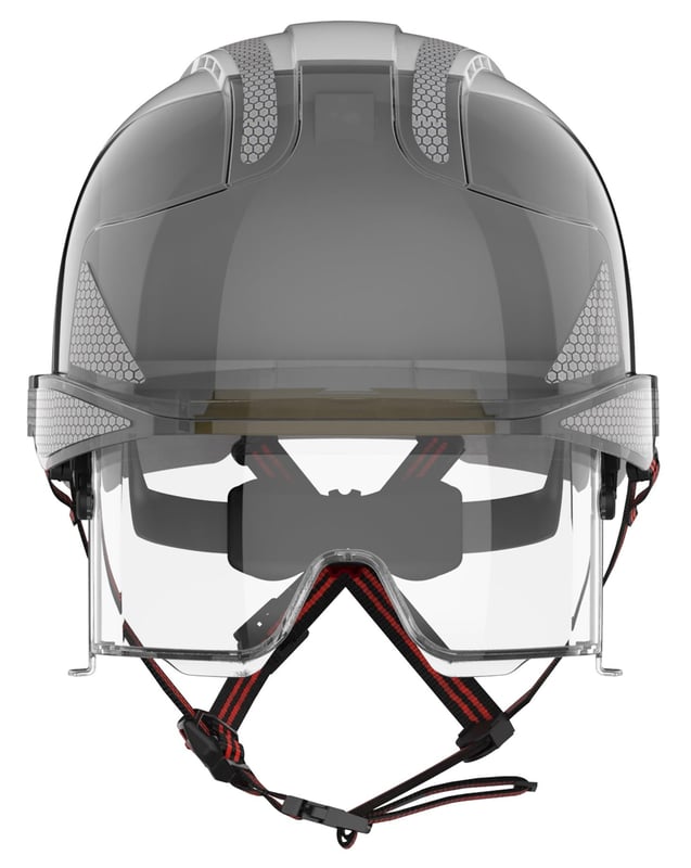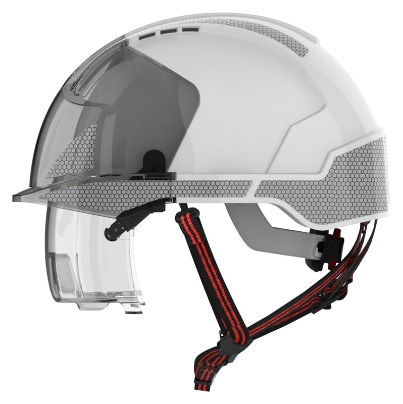 EVO® VISTAlens® DUALSWITCH™ combines the new EVO® VISTA® retractable eyewear helmet technology with the innovative DUALSWITCH™ chinstrap harness system, making it simple to change between working at ground level and working at height safety standards.