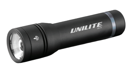 The UK-F4 is a solid aluminium flashlight. With a 450 lumen output, it has an easy push pull focus to change from spot to flood beam. Rated to IP66, it is fully dust proof and can be used in heavy rain. Comes with safety nylon wrist strap and presented in nylon hard case.Features: