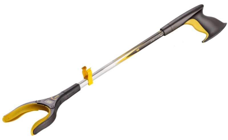 Don’t worry about bending down – you can attach your Arthri-Grip Pro reacher/grabber to your walking stick, walker or wheelchair with a stick clip.