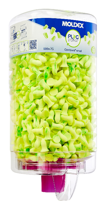 Contains 500 pairs of Moldex Contours earplugs (size small)