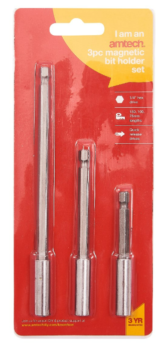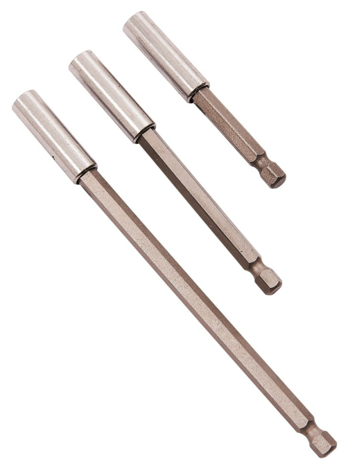 Set includes 75mm, 100mm and 150mm long magnetic bit holders