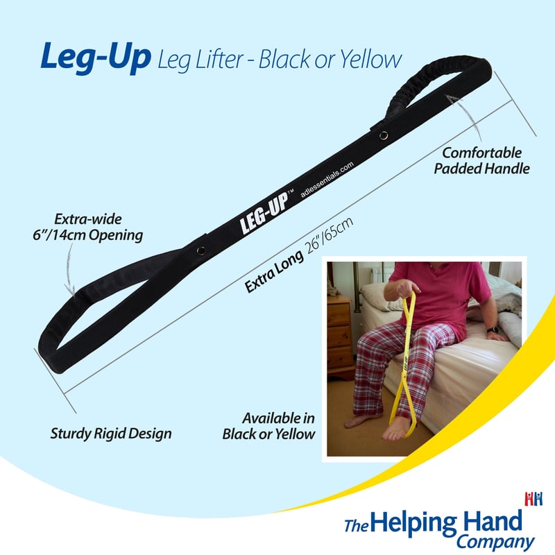 The LEG-UP is a handy aid designed to help move your legs into bed, onto wheelchair footrests or up onto a footstool.Ideal for people struggling to bend, limited mobility, back pain, recovering from surgery.