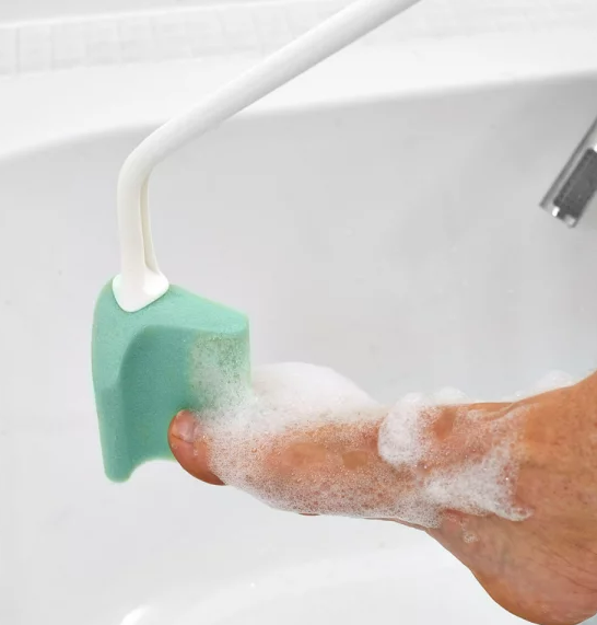 The long handled sponge is bendable to wash your feet when sitting or standing in bath or shower